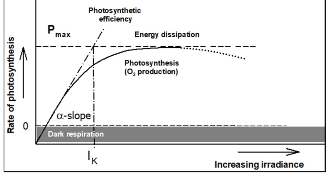 1 BAKER NR. (2008). Chlorophyll fluorescence: a probe of photosynthesis in vivo. Annual Review of Plant Biology 59, 89–113.2 HENLEY WJ (1993). Measurement and interpretation of photosynthetic light-response curves in algae in the context of photoinhibition and diel changes. J Phycol 29:729–7383 HOULIEZ, E., LEFEBVRE, S., LIZON, F., SCHMITT, F.G., (2017). Rapid light curves (RLC) or non?sequential steady?state light curves (N?SSLC): which fluorescence?based light response curve methodology robustly characterizes phytoplankton photosynthetic activity and acclimation status? Mar Biol (2017) 164:1754 MASOJíDEK, J.; RANGLOVá, K.; LAKATOS, G.E.; SILVA BENAVIDES, A.M.; TORZILLO, G. (2021). Variables Governing Photosynthesis and Growth in Microalgae Mass Cultures. Processes, 9, 820.5 PLATT, T., GALLEGOS, C.L., HARRISON, W.G. (1980). Photoinhibition of photosynthesis in natural assemblages of marine phytoplankton. J. Mar. Res., 38: 687-4016 RALPH, P.J. & GADEMANN, R. (2005). Rapid light curves: a powerful tool to assess photosynthetic capacity. Aquat. Bot., 82: 222–237.7 RASCHER, U., LIEBIG, M., LüTTGE, U., (2000). Evaluation of instant light-response curves of chlorophyll fluorescence parameters obtained with a portable chlorophyll fluorometer on site in the field. Plant Cell Environ. 23, 1397–1405.8 SAKSHAUG, E., BRICAUD, A., DANDONNEAU, Y., FALKOWSKI, P.G., KIEFER, D.A., LEGENDRE, L., MOREL, A., PARSLOW, J., TAKAHSHI, M., (1997) Parameters of photosynthesis: definitions, theory and interpretation of results. J Plankton Res 19:1637–16709 SCHREIBER U (2004). Pulse-amplitude-modulation (PAM) fluorometry and saturation pulse method: an overview. In: Papageorgiou G, Govindjee (eds) Chlorophyll fluorescence: a signature of photosynthesis, vol 19. Kluwer Academic Publishers, Dordrecht, pp 279–31910 WHITE, A.J., & CRITCHLEY, C. (1999). Rapid light curves: a new fluorescence method to assess the state of the photosynthetic apparatus. Photosynth. Res., 59, 63–72.