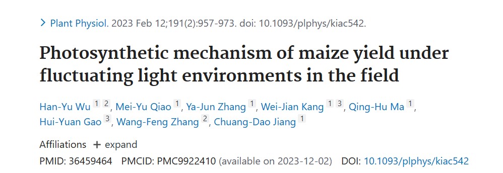 为了进一步探明这一机制,中科院植物所植物资源重点实验室姜闯道团队使用英国Hansatech的FMS-2荧光仪、Handy PEA植物效率分析仪及美国PP SYSTEMS的CIRAS-2便携式光合作用测定系统等仪器对玉米进行了田间(图1-图3)和模拟实验(图4、图5)。研究结果“Photosynthetic mechanism of maize yield under fluctuating light environments in the field”发表在Plant Physiology(IF=8.005 中科院1区TOP)杂志上。
