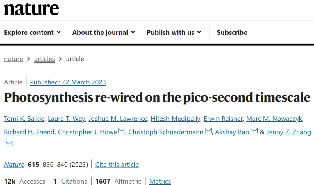 • [科研前线│Nature│氧电极]万亿分之一秒!“破解”了光合作用最初阶段!