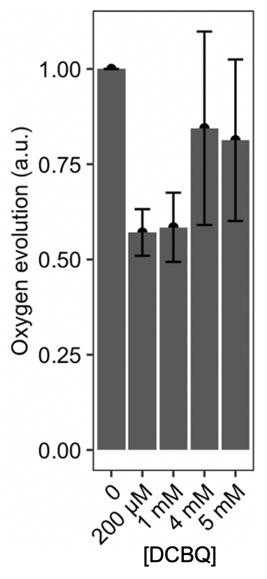 本文中,作者使用英国汉莎公司生产的液相氧电极测定系统检测氧气释放实验证实TA实验中,在所有浓度和DCBQ存在的情况下,PSII继续在体内对水进行氧化,这表明在加入DCBQ后,光激发产生空穴途径仍然活跃。