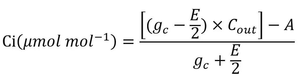 5)使用新计算出的实际净光合速率及其它参数(CO2a、gs和E)重新计算真实胞间CO2浓度(Ci):