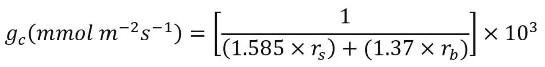 [1.585为CO2和H2O在空气中的扩散率;1.37为CO2和H2O在边界层中的扩散率;rs=1/gs;rb为边界层阻力]