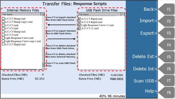 选中需要传输的程序之后点击F2 Import进行程序的导入,随后返回上一界面,在程序选择中选择需要的响应曲线,点击F2 Start开始测定即可。