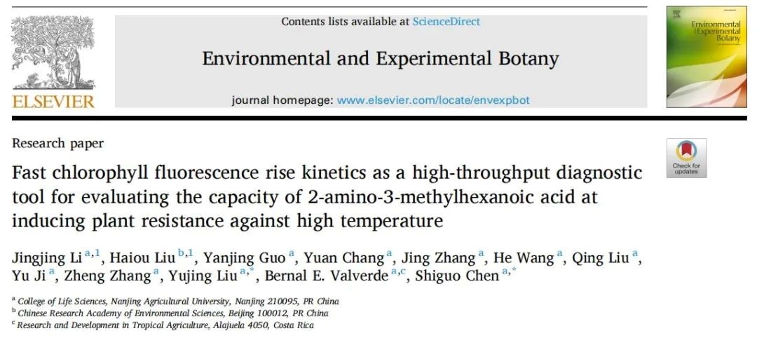 [科研前线│Handy PEA]OJIP曲线可以作为评估植物诱抗剂诱导植物抗高温能力的高通量诊断工具