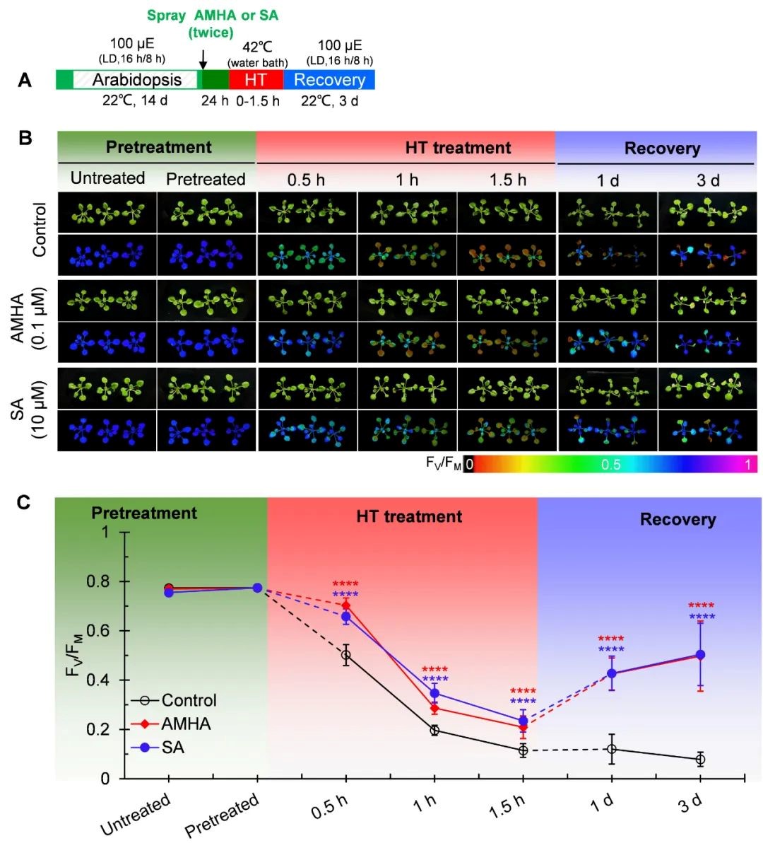 图5. AMHA和SA减轻了拟南芥的高温损伤