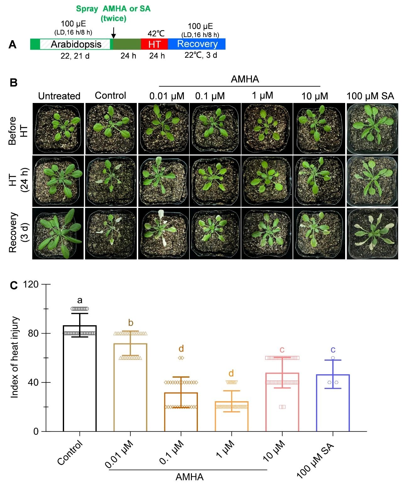图3.评估AMHA诱导拟南芥抗高温能力的模型