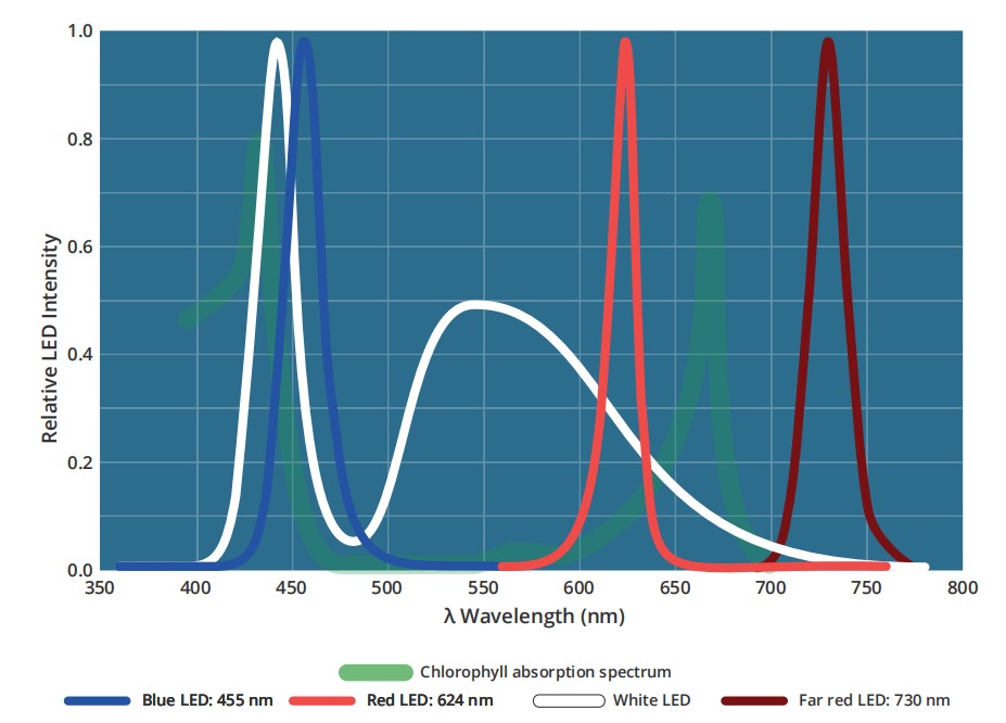 图1 FMS-300 LED相对于叶绿素a吸收光谱的发射特性