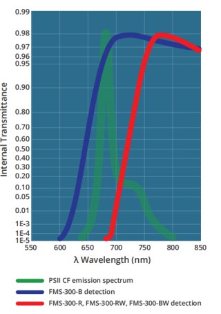与其他型号相比,FMS-300-B配备了不同的荧光检测器滤波片,可以捕获645nm以上的荧光信号,这提供了极低噪声的荧光信号,因为其检测了685nm发射峰的很大一部分。其他型号只检测680nm以上的荧光。