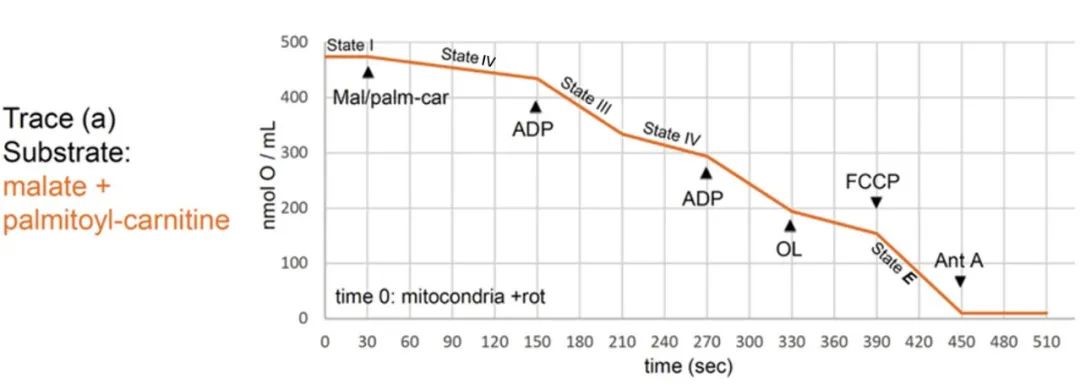 图3. 健康组织线粒体不同底物状态呼吸预期曲线