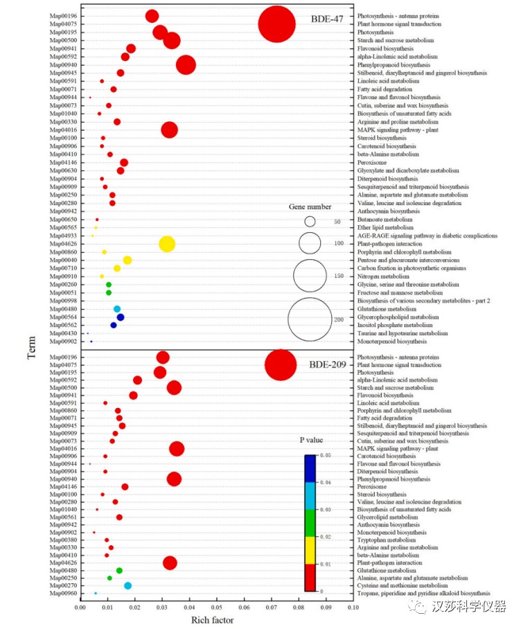 图3 BDE47和BDE209处理烟草叶片KEGG途径富集化分析
