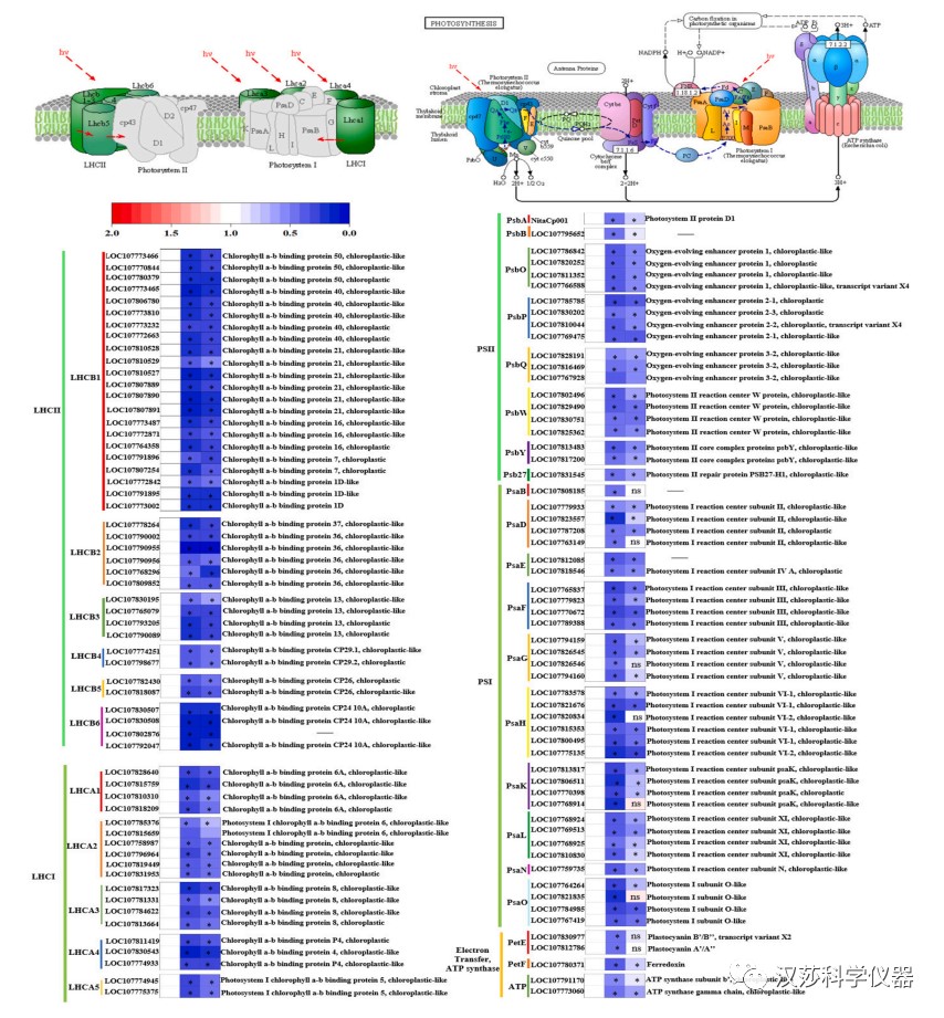 结合转录组分析发现,在光合作用电子传递过程中,BDE47影响的光合作用相关的DEG数量显著高于BDE209,这些DEG均为表达下调,且PSI相关的DEG数量显著高于PSII。BDE47和BDE209还显著上调了玉米黄质合成途径关键酶-β-胡萝卜素羟基酶(BCH)的基因表达,有助于玉米黄质的合成,促进叶黄素循环,启动调节性能量耗散,保护烟草叶片的光合作用机制。