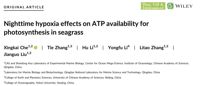 [科研前线│Handy PEA] 夜间低氧对海草光合作用ATP利用率的影响