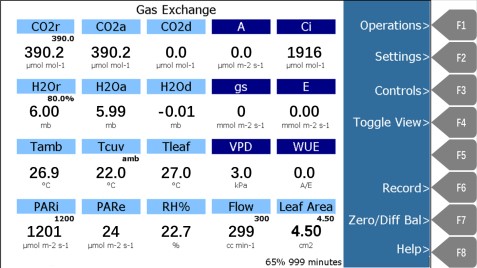 1、开机后进入主界面,待预热及自动校正并确定仪器稳定运行后,点击F1 Operations进入测定界面。