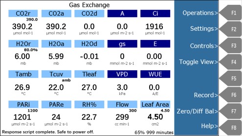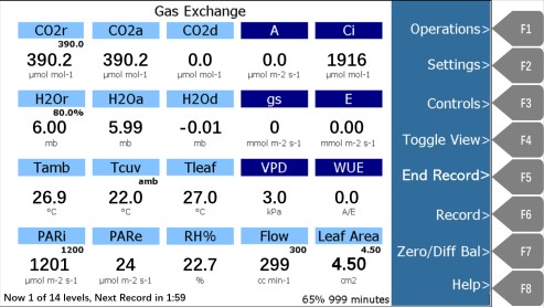 9、点击F1 Back返回仪器参数界面,可查看实时数据。