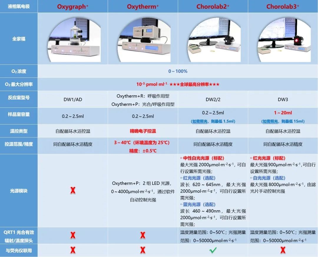 Hansatech Clark型液相氧测定系统功能配置差异如下: