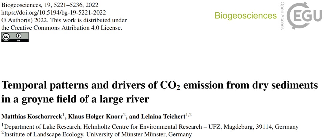 鉴于河坝干沉积物CO2排放来源的不确定性以及时间和空间上的差异,德国马格德堡大学景观生态研究所的Matthias Koschorreck利用美国PP Systems公司的CFLUX-1全自动土壤碳通量测定系统和EGM-5土壤碳通量测定系统分别测量了沉积物CO2排放的时间变异和空间变异,并结合其他多种方法,确定了德国一条大河流河坝干沉积物的CO2排放的主要来源,了解其时间模式和驱动因素。该研究结果“Temporal patterns and drivers of CO2 emission from dry sediments in a groyne field of a large river”发表在Biogeosciences期刊(IF=5.092)上。